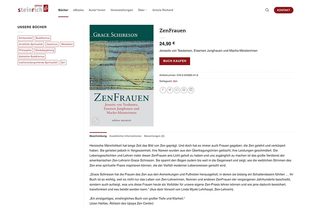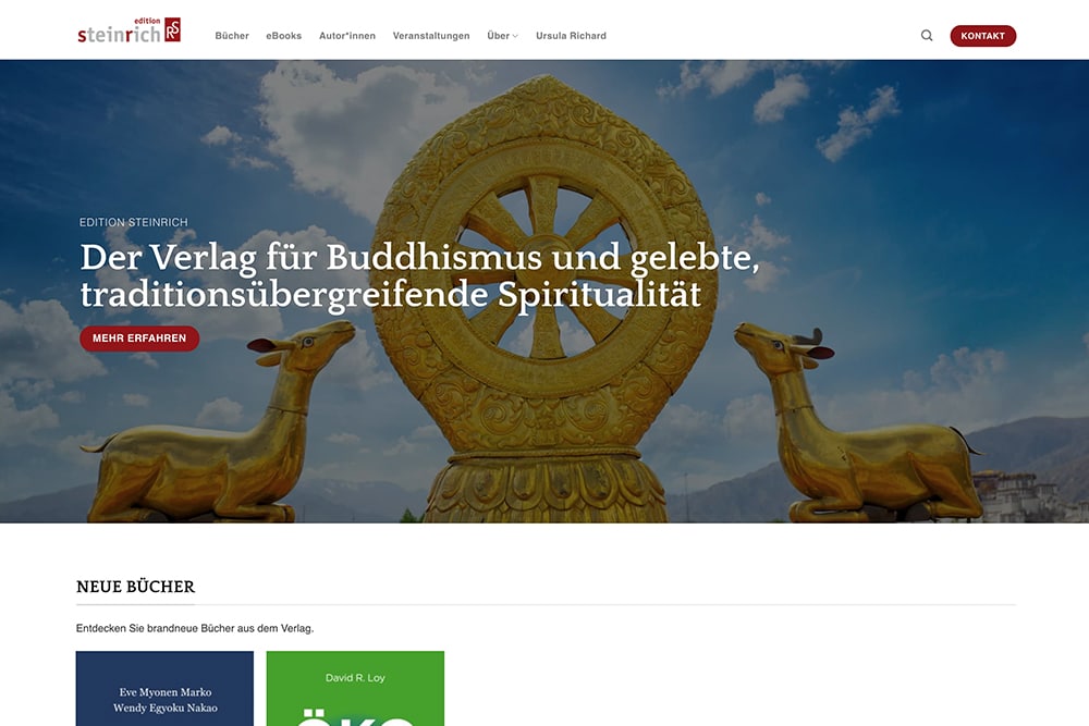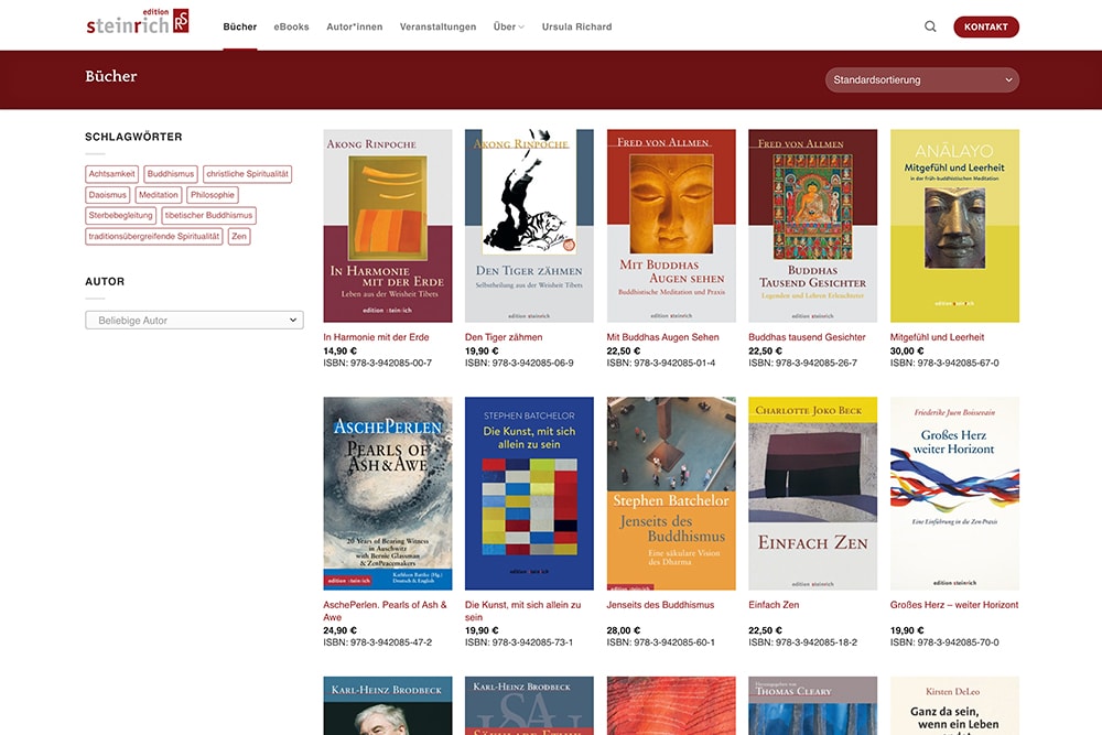Steinrich ist ein Buchverlag, der sich auf buddhistische Literatur spezialisiert hat. Unsere Aufgabe war es, einen Webshop auf Basis von WooCommerce zu erstellen, der alle 50 Bücher des Verlags präsentiert.