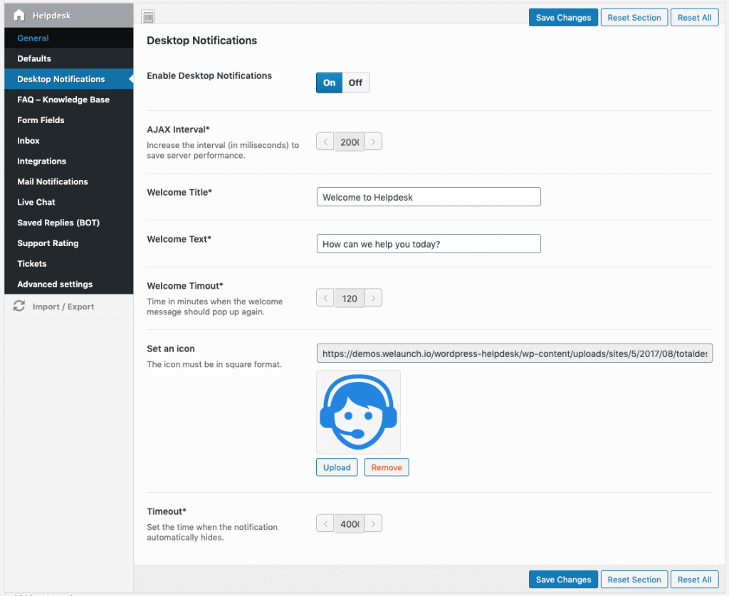 Desktop-Benachrichtigungen werden, wenn sie aktiviert sind, beim ersten Besuch eines Benutzers auf Ihrer Website angezeigt und IMMER, wenn ein neuer Kommentar zu einem Reporter-Ticket hinzugefügt wurde.